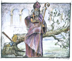 Au cours du 8 siècle, le pape entreprend de convertir les peuples germaniques vivant sur le territoire des Pays-Bas actuels et de l'Allemagne actuelle. Pour parvenir à ses fins, il y envoie des missionnaires anglais. Le choix des missionnaires anglais est lié au fait que ceux-ci maîtrisent la langue des Germains en raison de leur parenté généalogique. C'est ainsi que Boniface (dont le nom de baptême est Winfrid) part pour la Frise avec la mission de convertir les Frisons au christianisme. Cette mission est un échec total, alors qu'ailleurs, notamment sur les terres allemandes, Boniface connaît un succès d'autant plus grand. Il impressionne en abattant le chêne de Thor. La vengeance du dieu Thor ne venant pas, de nombreux Germains pensent que les dieux ont perdu leur puissance, ce qui amène beaucoup d'entre eux à se convertir au christianisme.